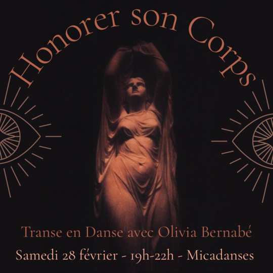 Nous danserons dans une salle dans le 4ème arrondissement de Paris, chez Micadanses. Je veille à assurer la sécurité d’un cadre dans le non-jugement, le respect, la bienveillance, pour que chacun.e puisse s’autoriser pleinement à plonger dans ses profondeurs sans crainte. Tout est fait pour que vous sentiez le mieux possible.